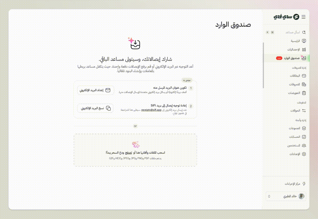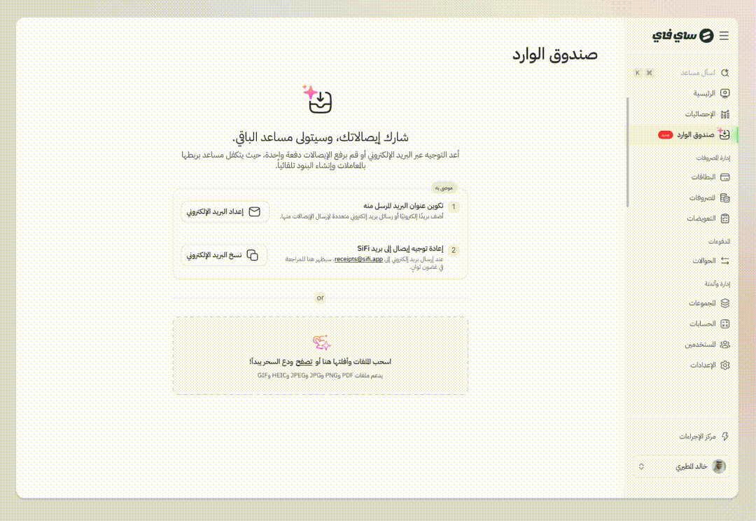 - اسحب وأفلت عدة إيصالات مرة واحدة في صندوق ساي فاي (عبر الويب أو الهاتف المحمول)